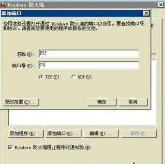可以通过点击下面的“添加程序”和“添加端口”,手工添加你自定义的服务,比如添加FTP服务的21端口。如图20