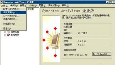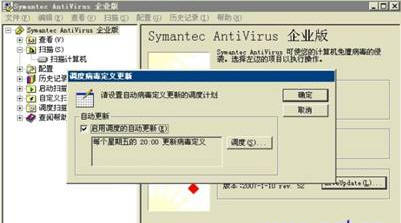 在 Symantec AntiVirus 的"文件"菜单上,单击"调度更新"。如图8