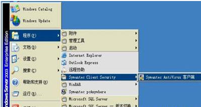 ①.选择“开始→程序→Symantec Clinent Securiy →Symantec AntiVirus 客服端”,进入管理页面。如图7