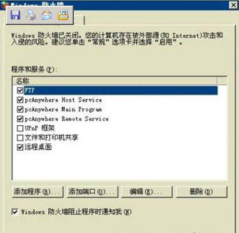 如果需要安装防火墙,建议使用WINDOWS自带的防火墙,注意在启用防火墙前一定要先设定好“例外”,至少要添加好远程连接的端口(如TCP3389、5631等端口)后再开启,以免开启后所有端口全部被禁止连接。